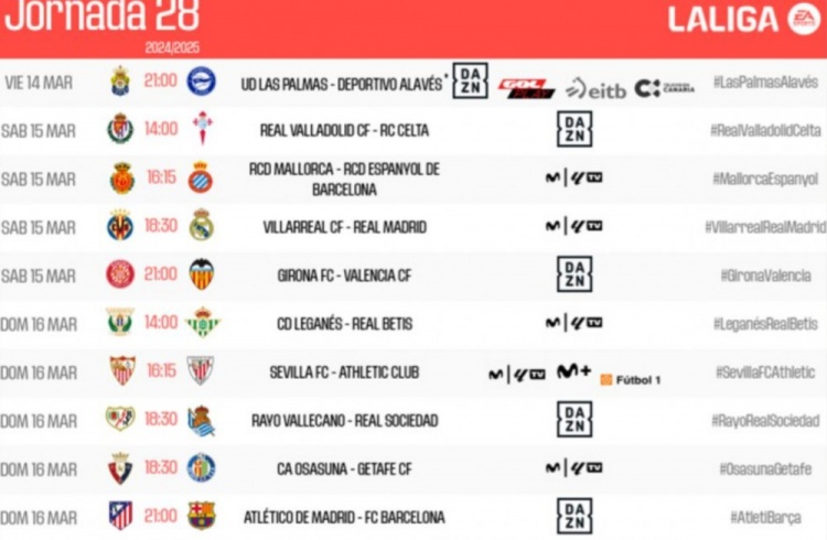 2月25日訊 近日,西甲官網(wǎng)公布了聯(lián)賽第28輪的比賽時(shí)間,本輪將迎來(lái)馬競與巴薩之間的強強對話(huà)。